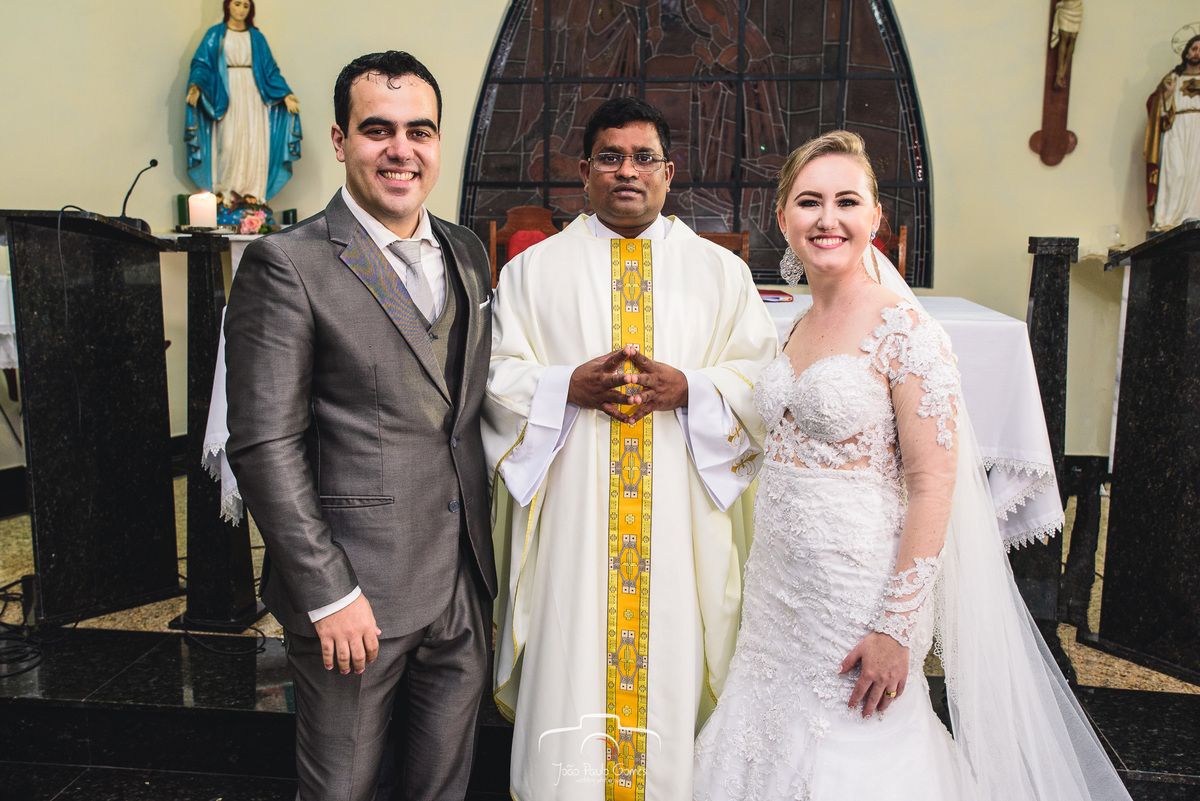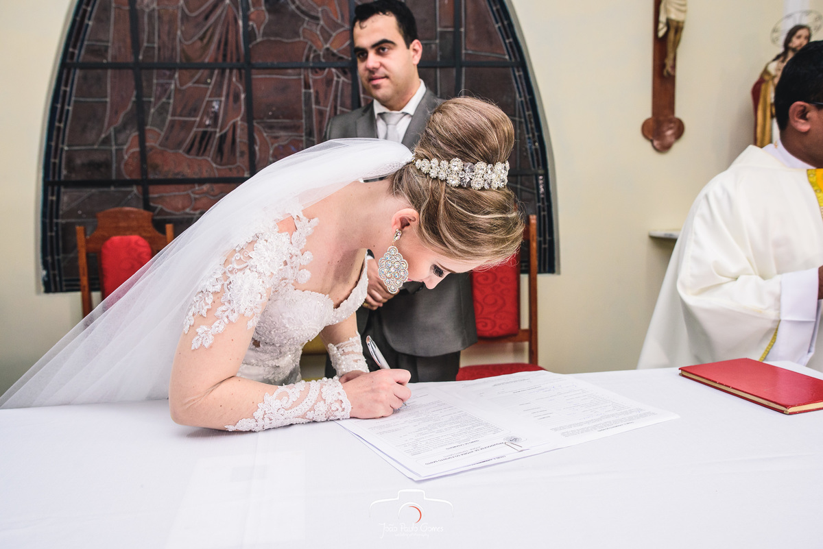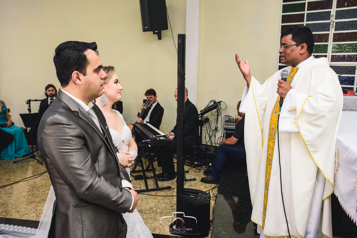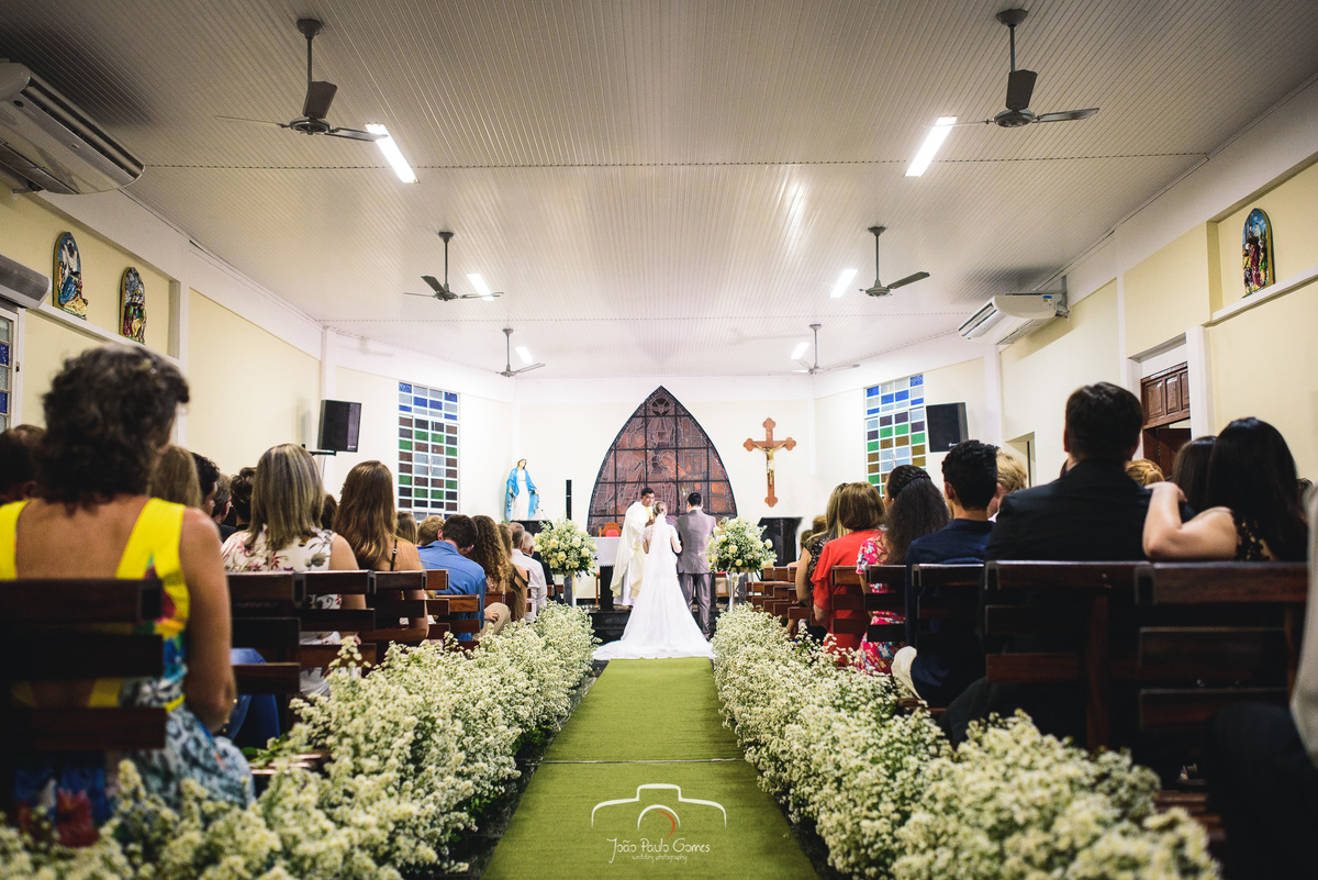 A igreja estava lotada, todos os convidados estavam lá para prestigiar o momento mais lindo e importante que é a consagração do matrimonio.