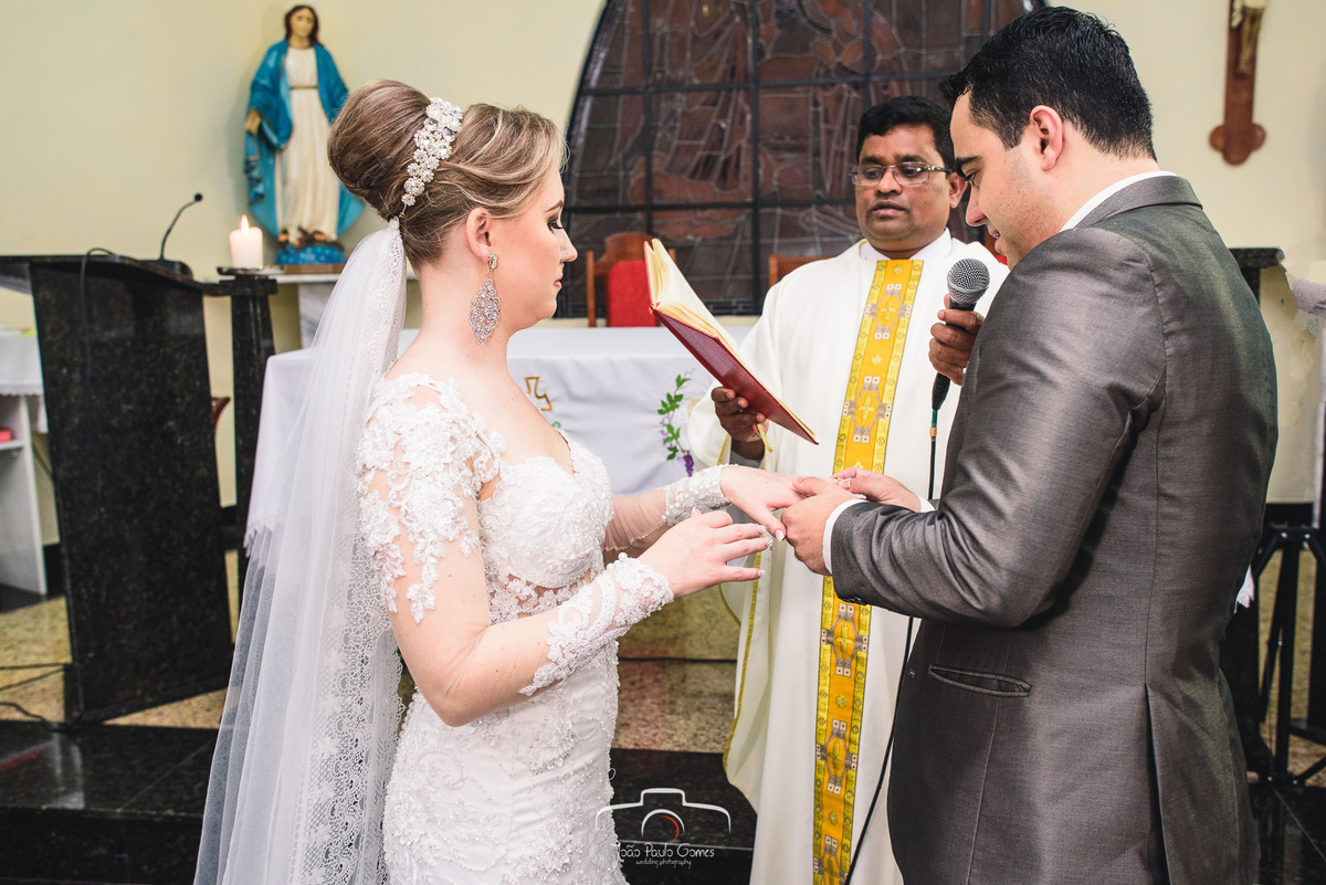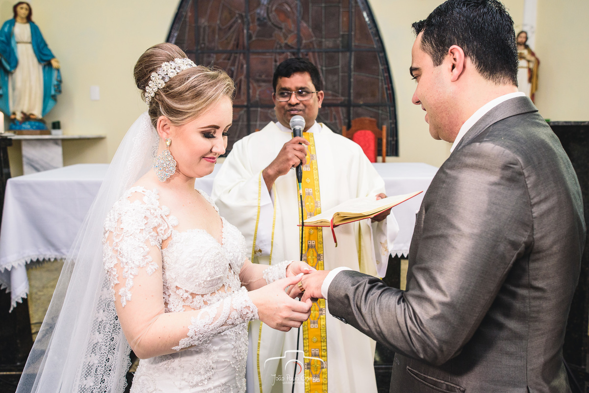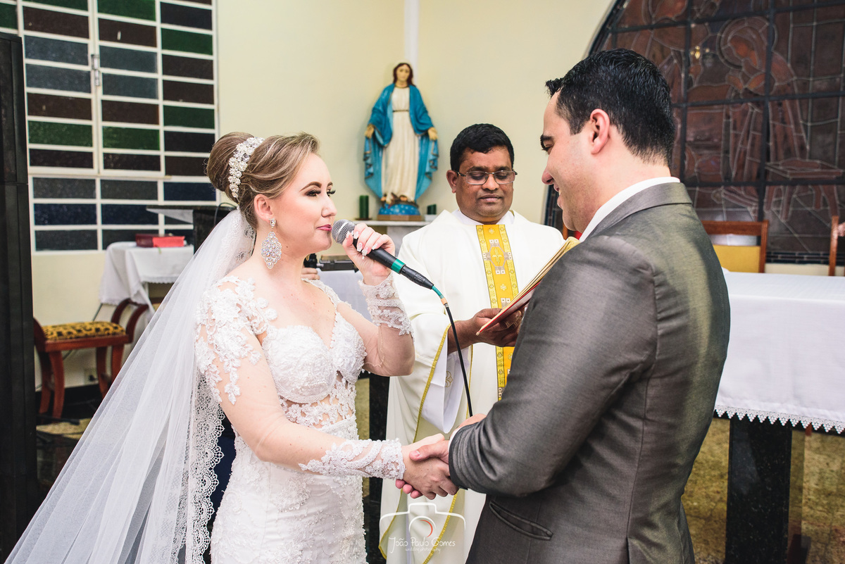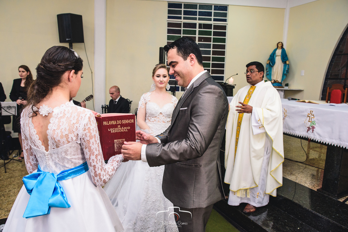 A igreja estava lotada, todos os convidados estavam lá para prestigiar o momento mais lindo e importante que é a consagração do matrimonio.